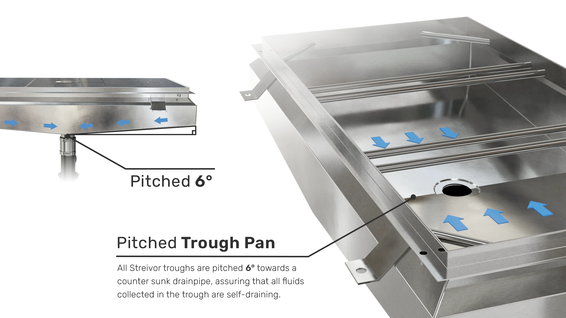 Streivor’s Floor troughs are designed and engineered for full code compliance meeting all building, plumbing, and health code/standards.
